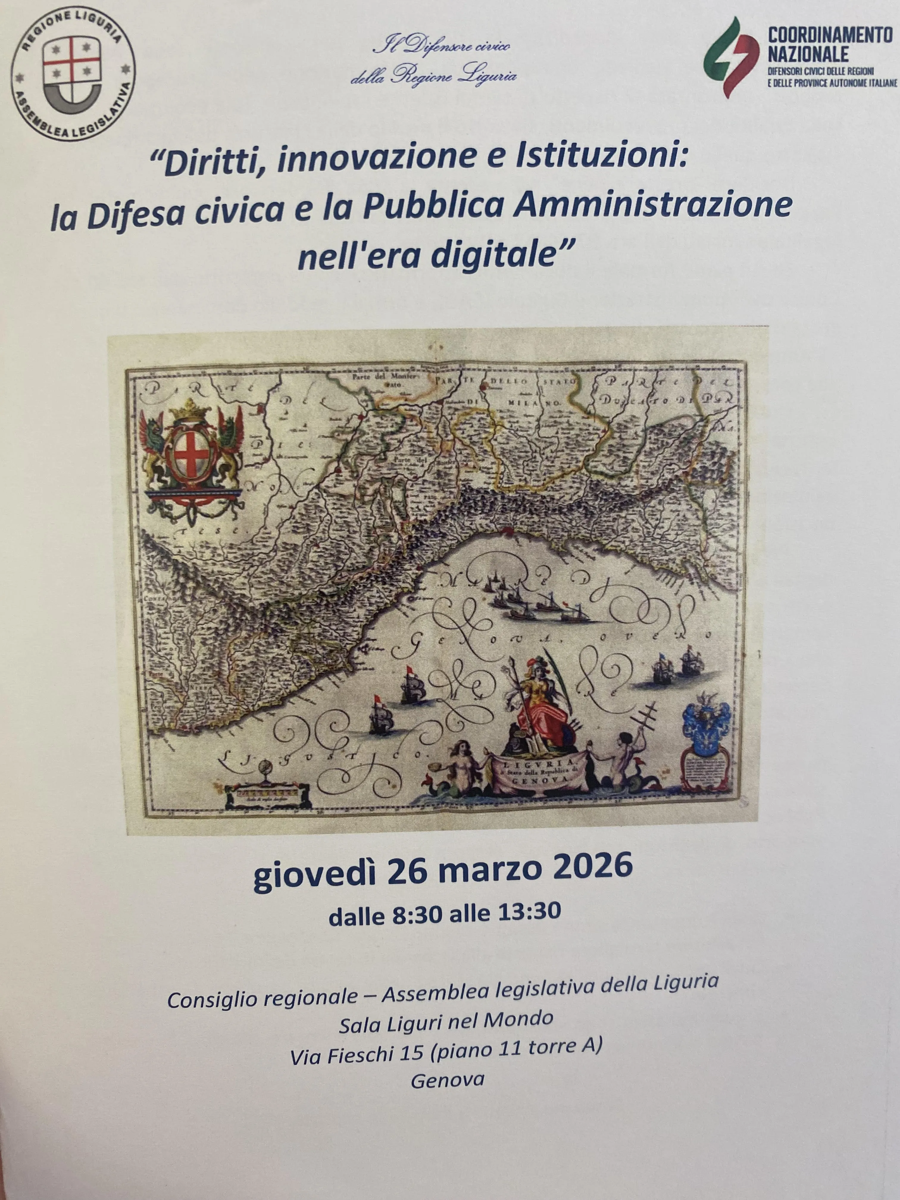 Il 26 Marzo si è svolto poi il Convegno “Diritti innovazione e Istituzioni: la Difesa civica e la Pubblica Amministrazione nell'era digitale”, promosso dal Difensore civico della Regione Liguria, un'occasione per riflettere sulle nuove sfide e opportunità poste dall'utilizzo dell'intelligenza artificiale nella pubblica Amministrazione.